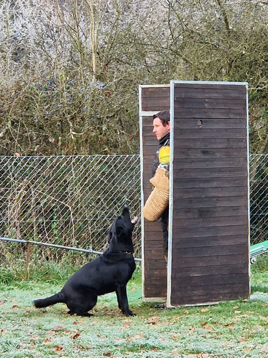 Gisela Ludwig hat mit ihrer mittlerweile 8 jährigen „Nikita Macaregra“ zum wiederholten Male die IGP 3 abgelegt. In der Fährte hat Niki nicht so richtig Lust auf suchen gehabt, sie hat lieber die Hinterlassenschaften der Hasen beseitigt 🫣